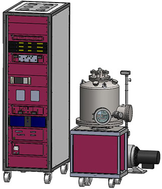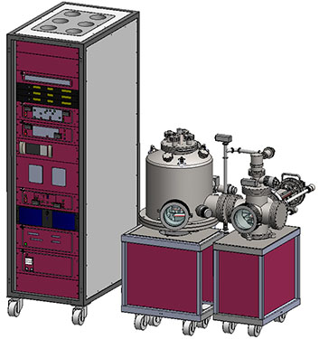 A self-contained, turn-key the ASTM E1559 Outgassing Test System features oil-free pumping with a dry scroll pump and turbo-pumps delivering vacuum pressure on the order of 10-8 Torr. The vacuum system operates by means of an air-operated gate valve and pneumatic valves.By using a set of 3 thermally controlled Quartz Crystal Microbalances (QCM) and an inline SRS 300 amu RGA mass spectrometer, the outgassing and deposition rates can be measured continuously and the outgassing molecular components can be detected and identified. The integrated effusion cell heater and temperature sensors are critical elements for the success of the test. The facility is fully computer-controlled using a powerful proprietary COSIMOD™ software, thus all operations can be programmed to take place automatically.